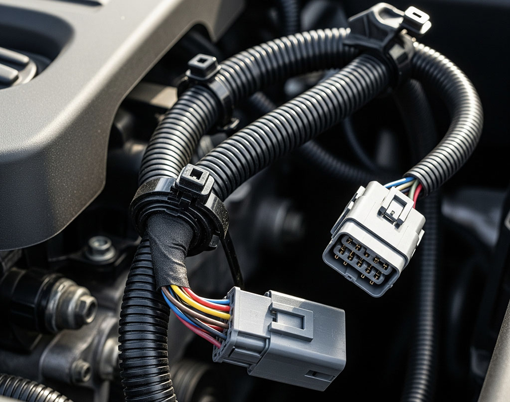 Harnesses are designed to fit vehicle system layouts compactly, freeing up space, reducing clutter, and enhancing overall system safety.